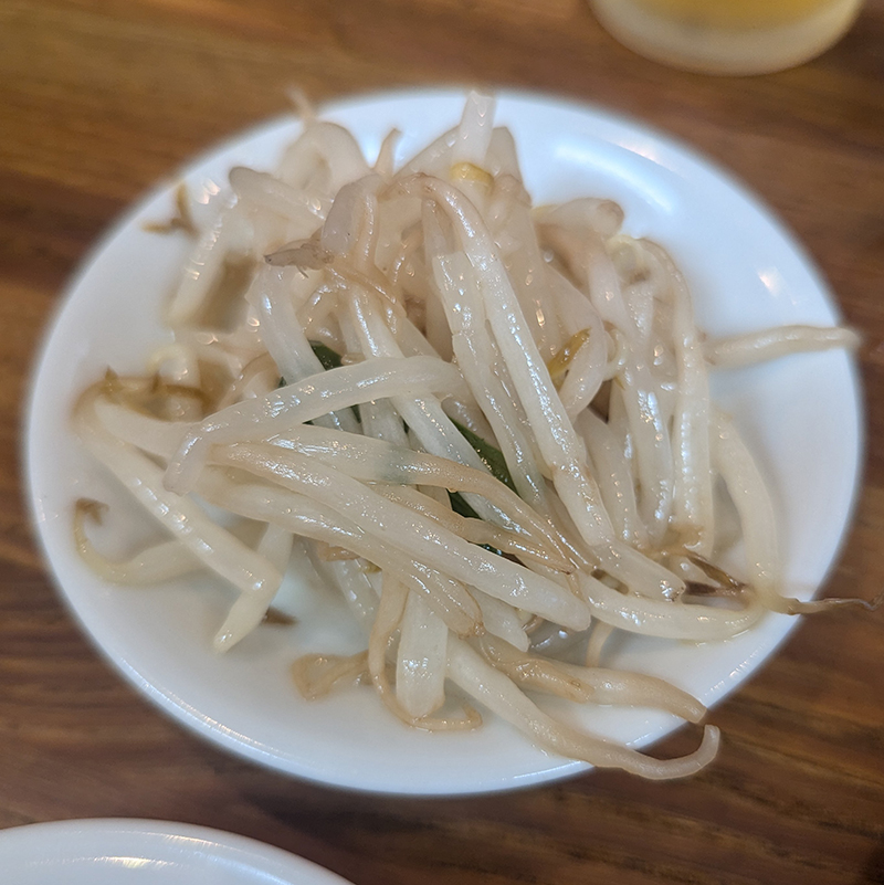 遅ればせながらお通しのもやしが。錦糸町店では餃子3枚以上に付くがこちらではお通しとして提供される。