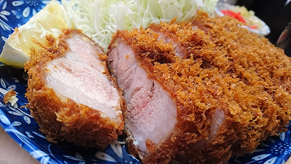 林SPFポークを使ったとんかつはかなり厚手ながらほどよい火加減でうっすらとピンク色に染まっている。
