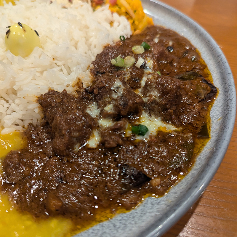 スリランカビーフカレーはじっくりと炒められた玉ねぎのコクと旨味が感じられる。ブラックアンガスビーフにも味が染み込んでいて旨い。