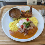 カレーは日替りで3種類用意されていて、単品もしくはこれらを組み合わせて合掛けにすることも可能だ。