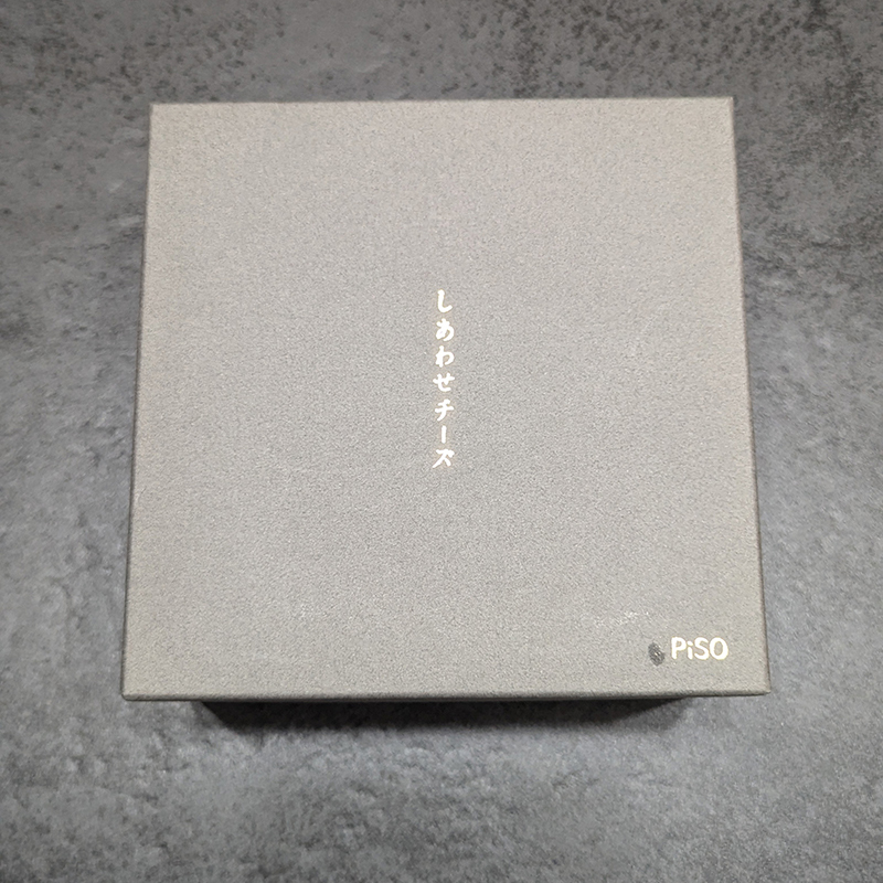 箱にはシンプルにしあわせチーズケーキと店名のロゴが刻まれているのみ。