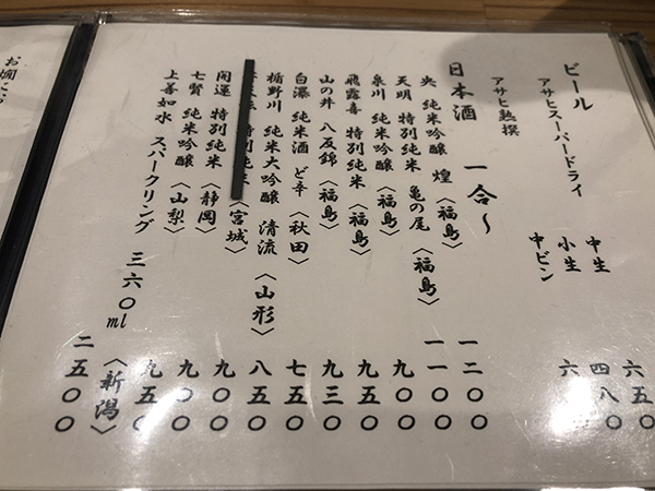 店頭に出されたメニューを眺めると酒飲みの琴線に触れる品々の酒肴が並ぶ。