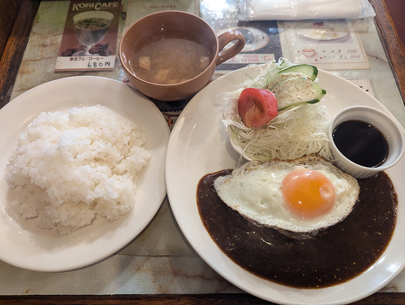 この日はハンバーグが乗った特製ピラフと心に決めていたのだが、残念ながらランチメニューにはなかった。聞けば、ピラフの提供は14:30以降なんだとか。
