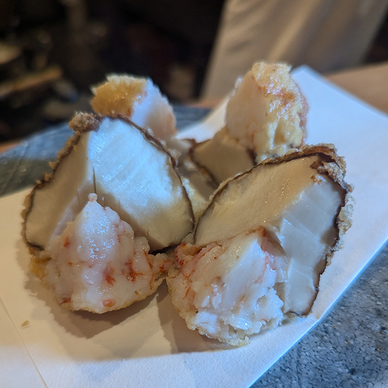 まずは大ぶりなどんこを海老しんじょと共に揚げたもの。椎茸は厚みがあってジューシー。
