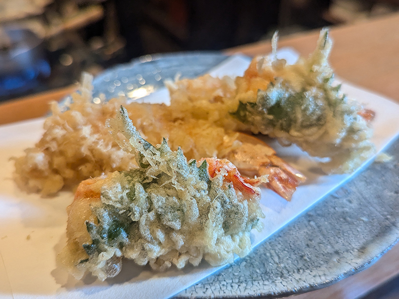 この日は生憎、穴子はなかったがその代わり海老があった。衣は厚めだがサクサクとした食感で油切れがよく実に軽快だ。