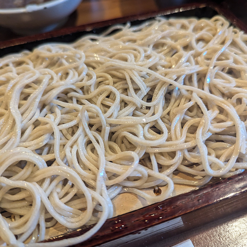 締めにはざるそばを。新そば前のこの季節にしては十分にそばの香りが堪能できる。つゆは濃すぎずバランスがいい。