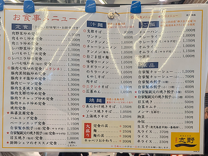 メニューのラインナップを見ると麺類から炒め物まで町中華そのものなのだが名物は豚肉七味炒め。