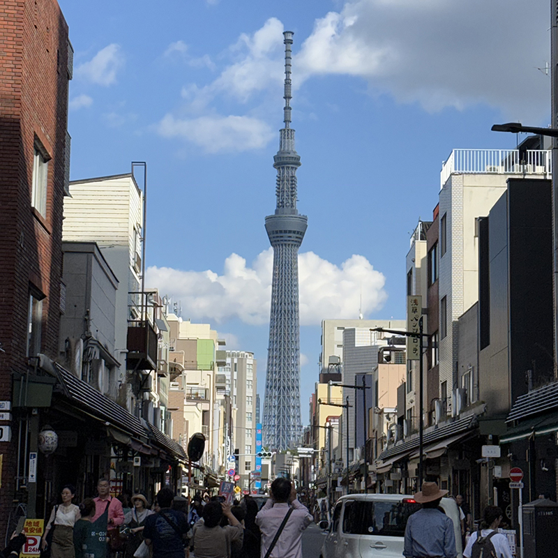 かっぱ橋商店街にある鳥肉屋さん。ちょうどスカイツリーが下まで見渡せる通り沿い。