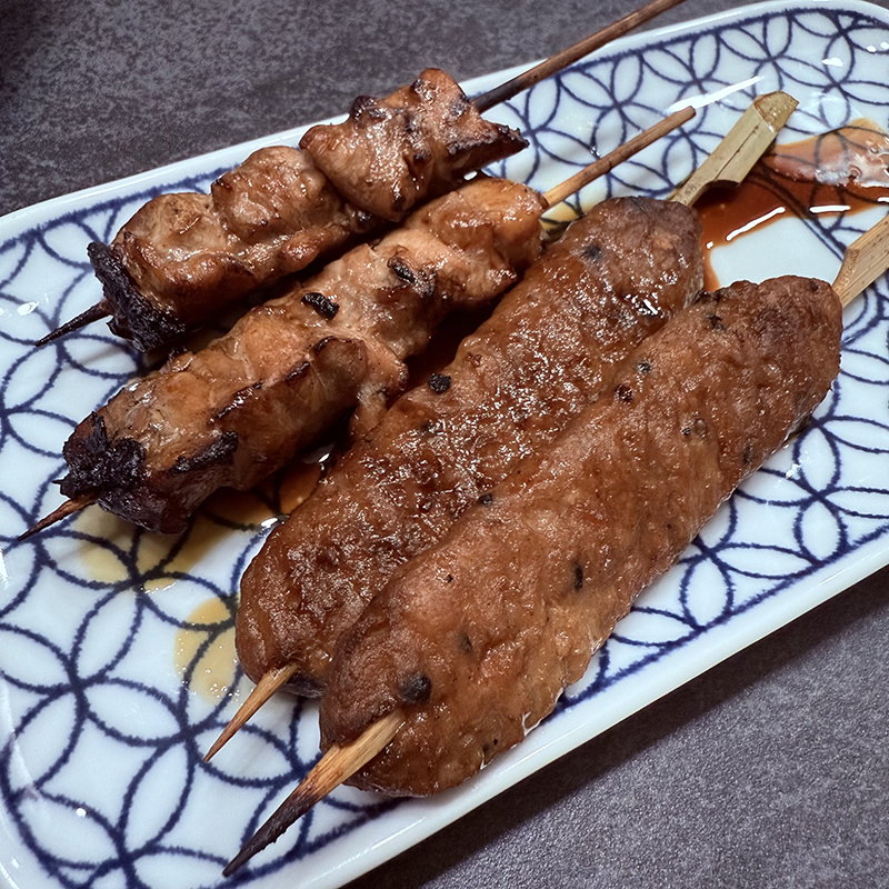 つくねは柔らかく、タレがいい塩梅に染みていた。もも肉はほどよい弾力感があって旨味も十分。焼き加減もちょうどいい。