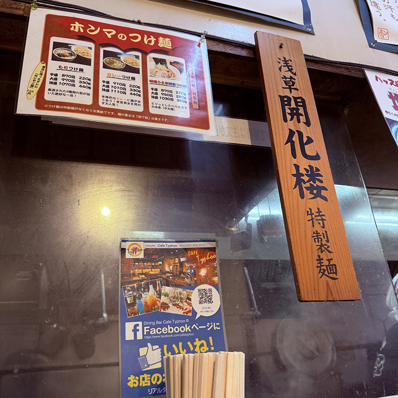 麺はてっきり太いものだと思っていたが意外にも中細のストレート麺。あまり浅草開化楼らしくはないが、スープとの相性は悪くない。