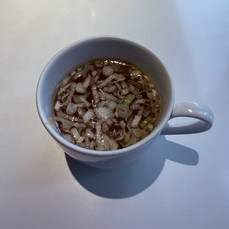 まずはコンソメスープが供された。手作りらしさが感じられ、味も濃いめで料理への期待も膨らむ。