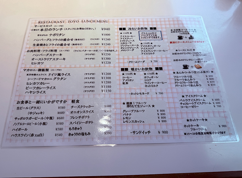 メニューには各種洋食メニューが並ぶ。その中からデミグラ系と揚げ物が試せるこちらを選択。