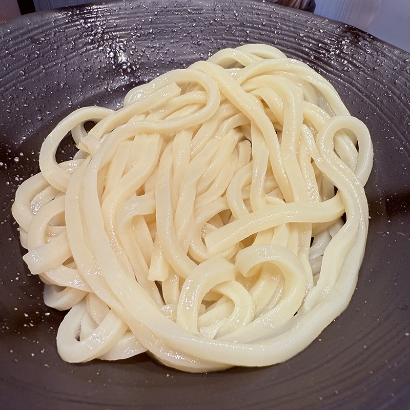 うどんは冷たく、つけ汁が温かい。うどんはつるつると喉越しがいいのだが、コシはさほど強くはない。