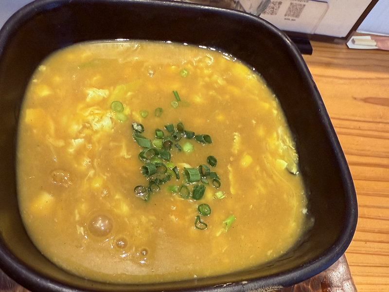 汁物だけによりコシの強さは気になったが、つゆは出汁の旨味がしっかりとしていて旨い。スープそのものがというよりもとろけるチーズの効果で円やかに仕上がっている。餡掛けになっているだけに寒い日は温まる。
