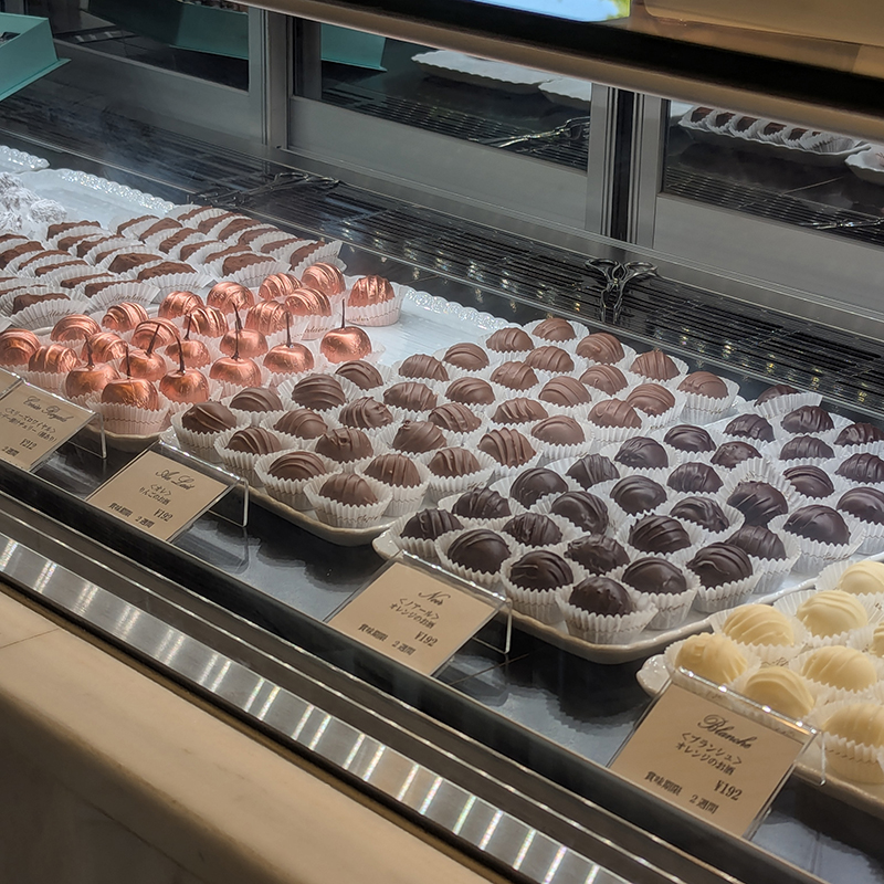 ショーケースにはトリュフチョコなどキレイにディスプレイされている。今回は2種類購入。