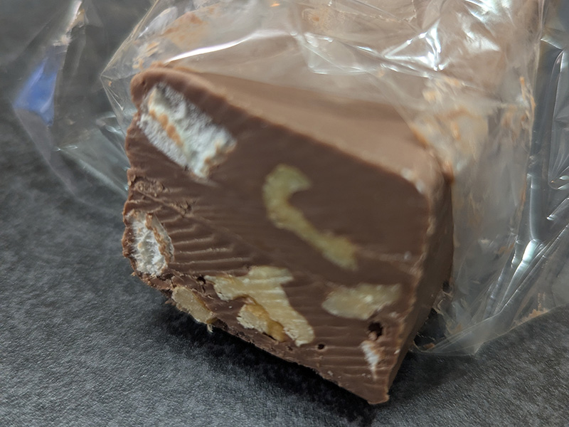 ミルクチョコレートにナッツ類とマシュマロが入っているところが面白い。このミルクチョコレートの出来がいい。甘さ、円やかさが実にいいバランス。