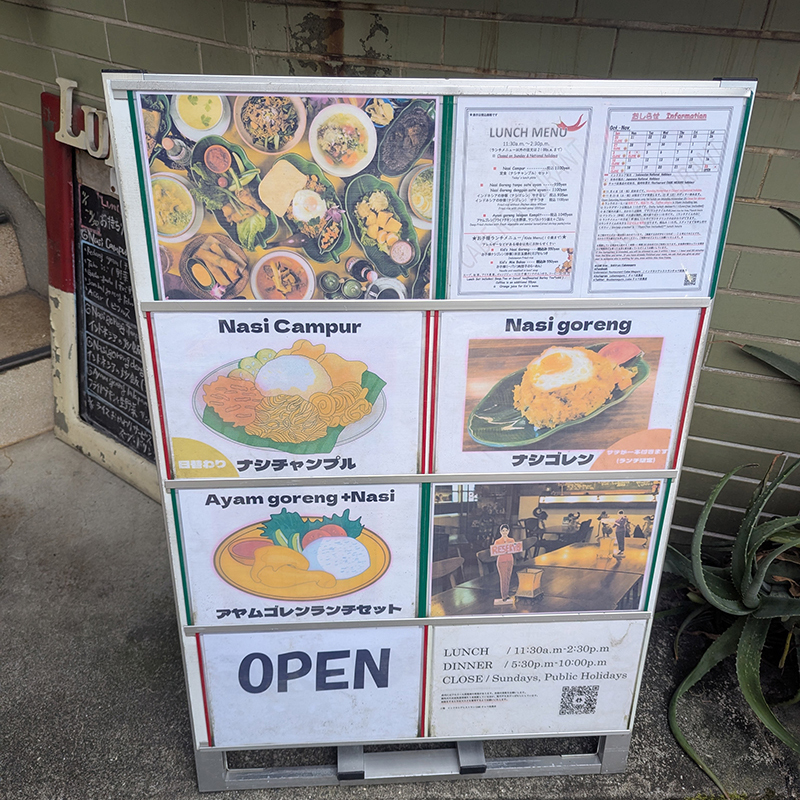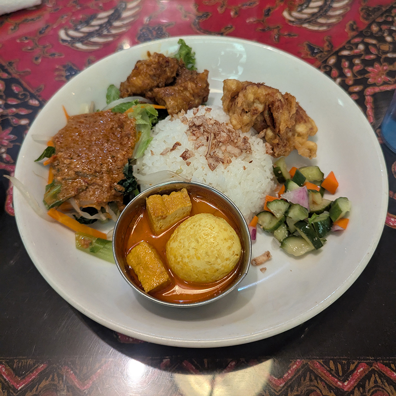 こちらでは本格的すぎてメニューの料理名を見てもちんぷんかんぷん。そうすると結局、無難にナシゴレンやミーゴレンを頼んでしまう。これでは進歩がないので一念発起してインドネシア風の定食に初挑戦。