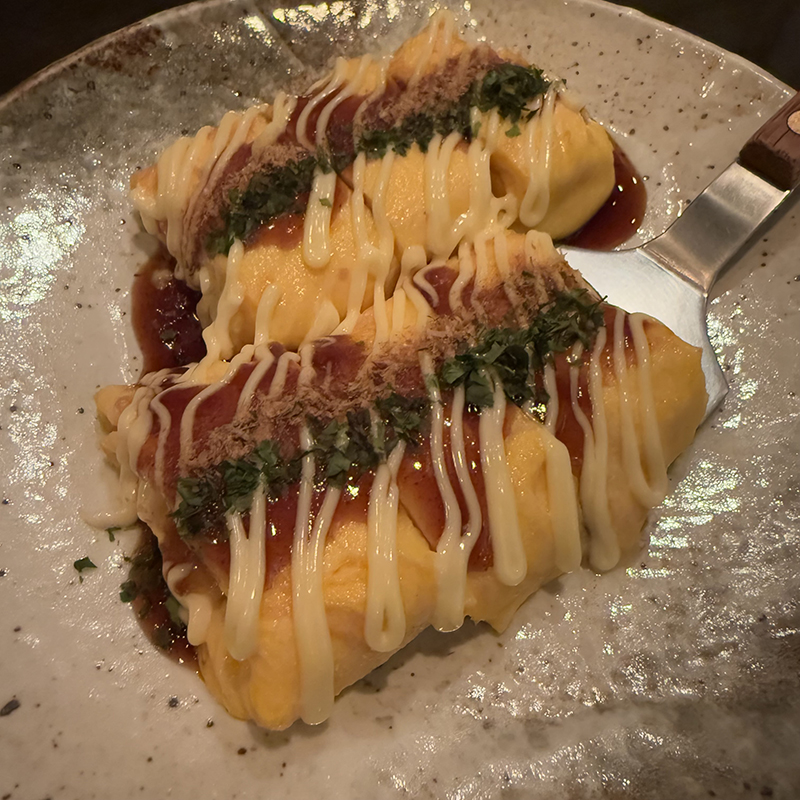 こちらは定番メニューのひと品。玉子の艷やかさ。ひと目見ただけで料理の質の高さが感じられる。こちらは千代の富士監修の卵焼き。中に具材としてチーズと海老が入るのが特徴。