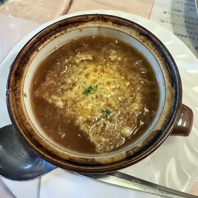 コンソメそのものも美味しいが飴色になるまで玉ねぎをじっくりと丁寧に炒められているので玉ねぎのしっかりと甘くコクがある。