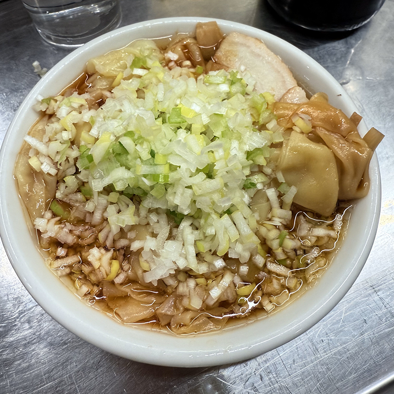 どちらも不思議とネギが染みる。チャーシューをほどよく食べ進めた後はワンタンのつまみを。
