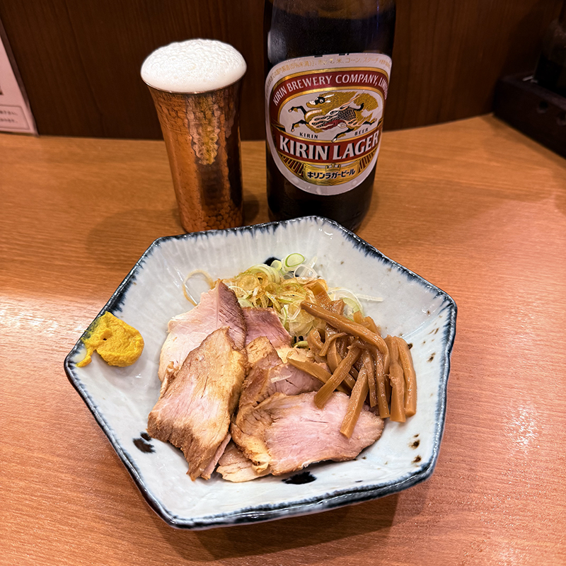 空気が乾燥しているせいかチャーシューはやや乾き気味。最近はチャーシューつまみに竹の子も付いてくるのが嬉しい。こちらは甘辛い味付けでとても柔らかい。どちらもラーメン用に残すことなく完食。