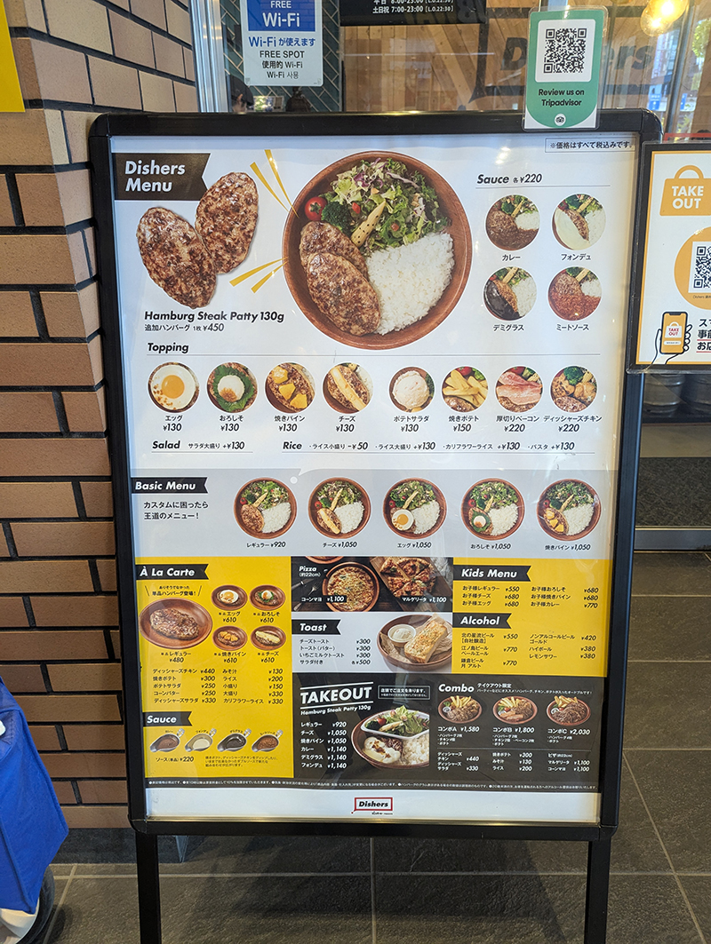 基本はハンバーグにソースやトッピングを選択してお好みのスタイルにカスタマイズするスタイルで注文はラブレットで行う。