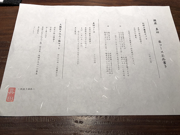 例えば、一番安価なコースだと、4品の前菜とそばがセットになって2,450円。