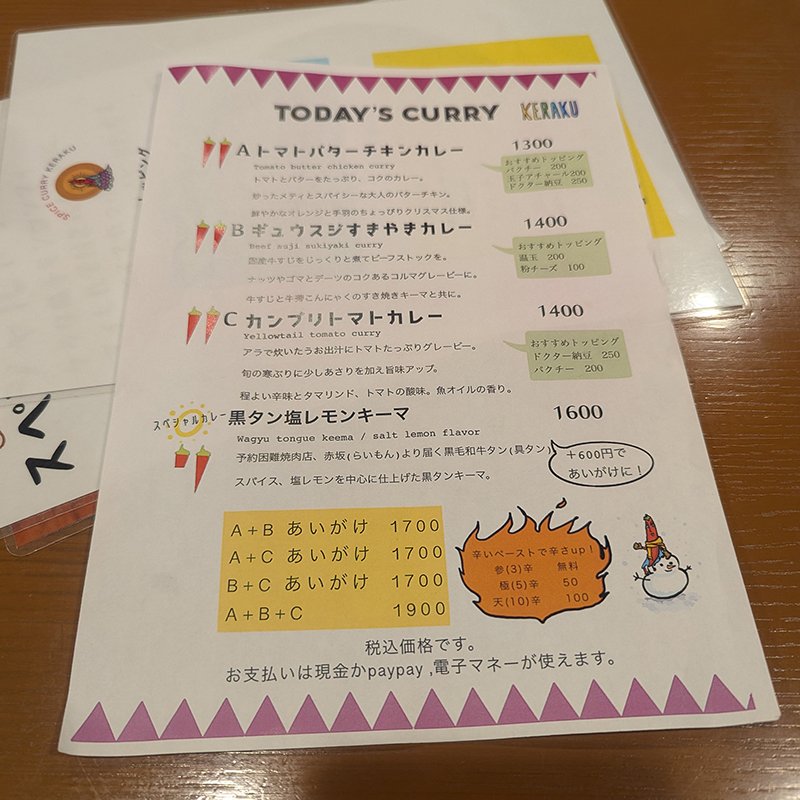 結局、迷った挙句2種類のカレーをあいがけを注文。