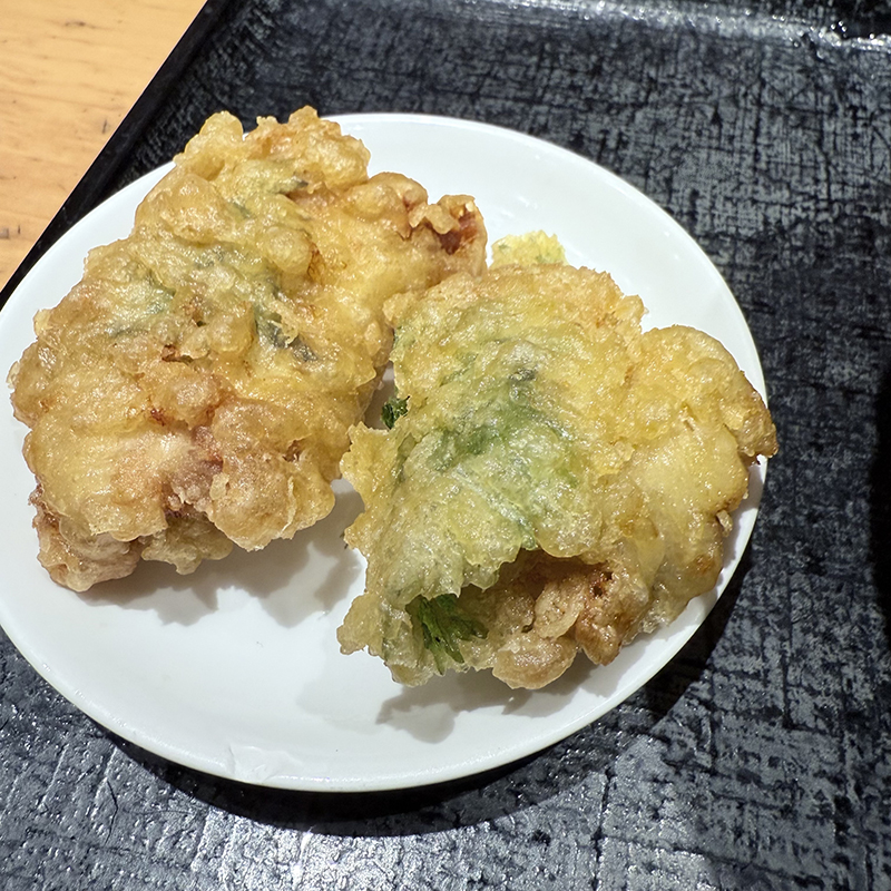 寒空の下並んだので温かい肉うどんを。ビールを頂いたのでサイドメニューとしてとりからを追加した。