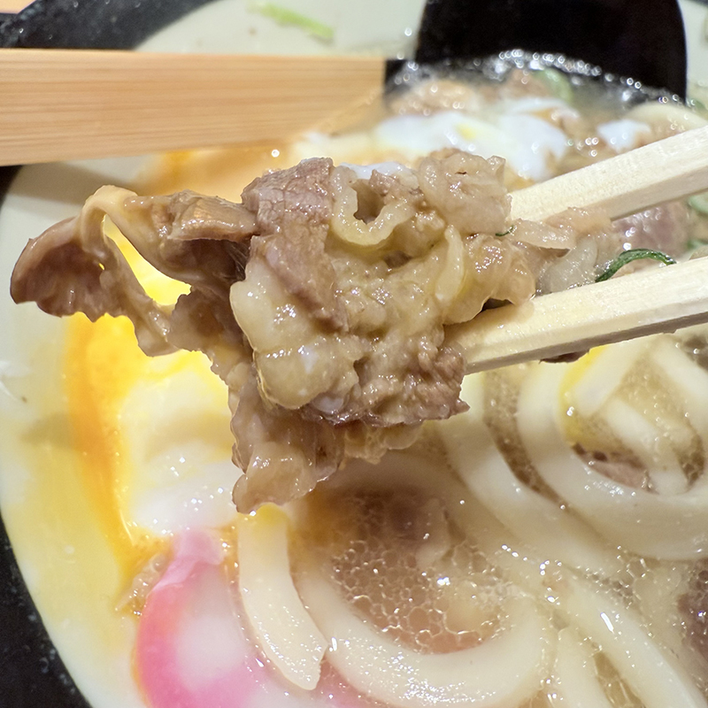 つゆはイリコ出汁が効いていて美味しいが肉うどんにすると肉の甘さが溶け出して折角の出汁の持ち味も半減してしまうのでこのつゆなら他の選択肢の方が良かったように思う。