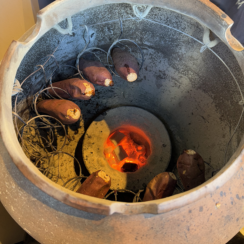 焼き芋はこちらの壺の中で炭火で焼かれる。