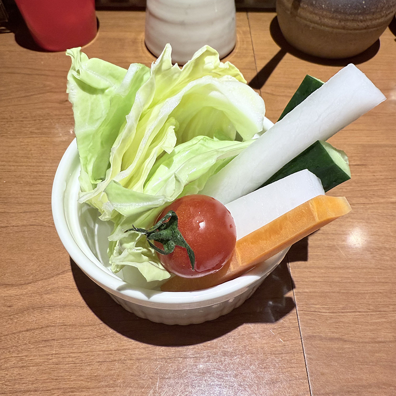 まずはお通しの野菜スティック。これは串揚げのいい合の手に口がリセットされていい。