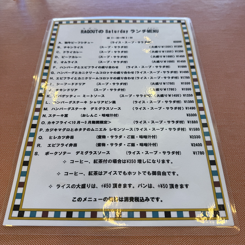 改めてメニューを確認。これは立て看板に書いてあるメニューから選択した方が良さそうだ。