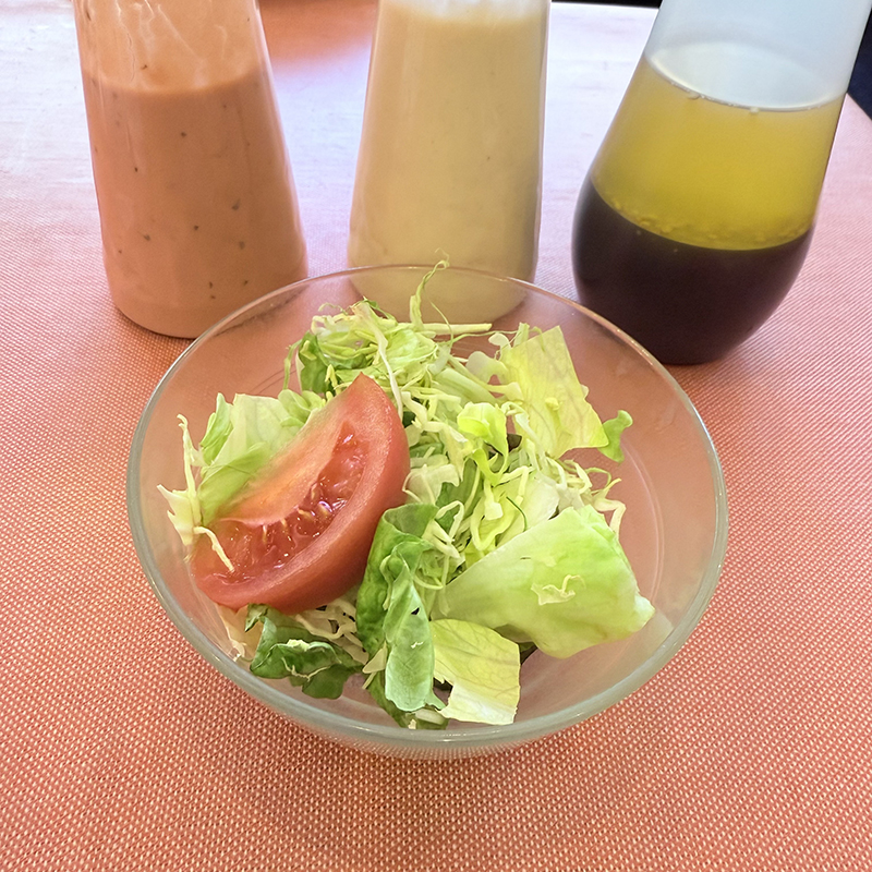 ドレッシングが3種類用意されていて、各々試してみたが、いずれも手作りで甲乙付け難い。