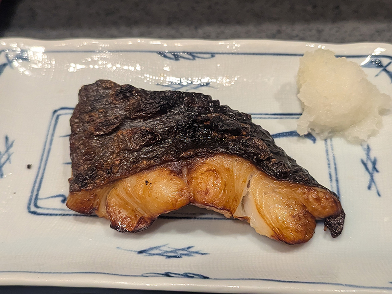 銀だらは身が厚く素材もまずまずで味付けもシンプルで嫌味がない。しかし、提供時間が早いだけにさほど温かくないのが残念。