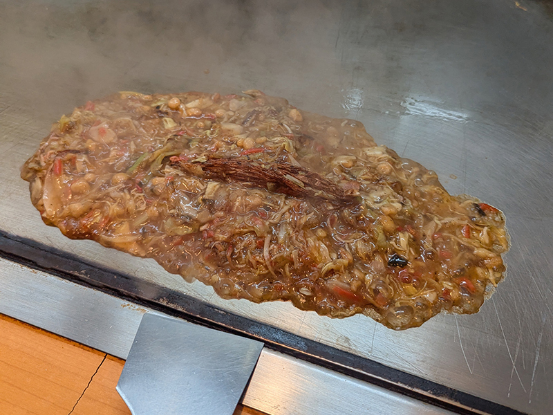 いつもはついつい他のお好み焼きに目が行ってしまうので気になりながらももんじゃは今回が初めて。