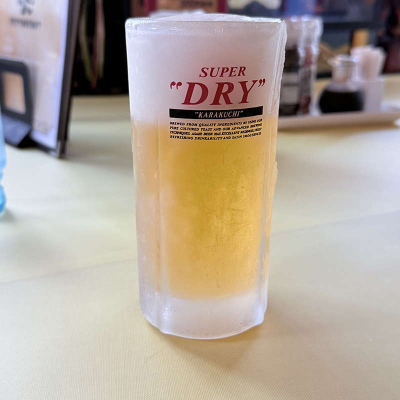 まずは、ビールで喉を潤す。店内は大きめのテーブルと4人掛けのテーブルがいくつか用意されているのでそこそこキャパはある。アジアンテイストの調度品が多く、オリエンタルな雰囲気。