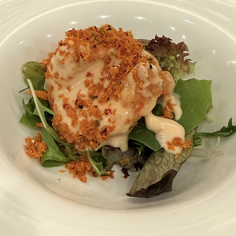 大ぶりの海老はプリッとした食感で食べ応え十分。ソースも単調ではなくバランスもいい。