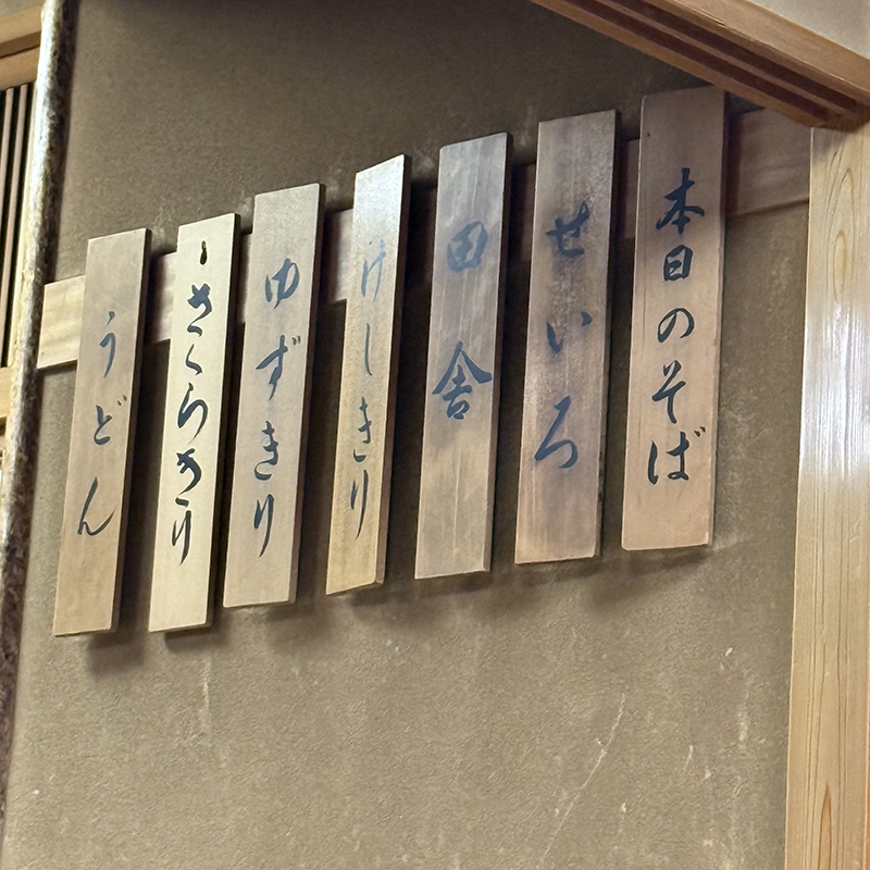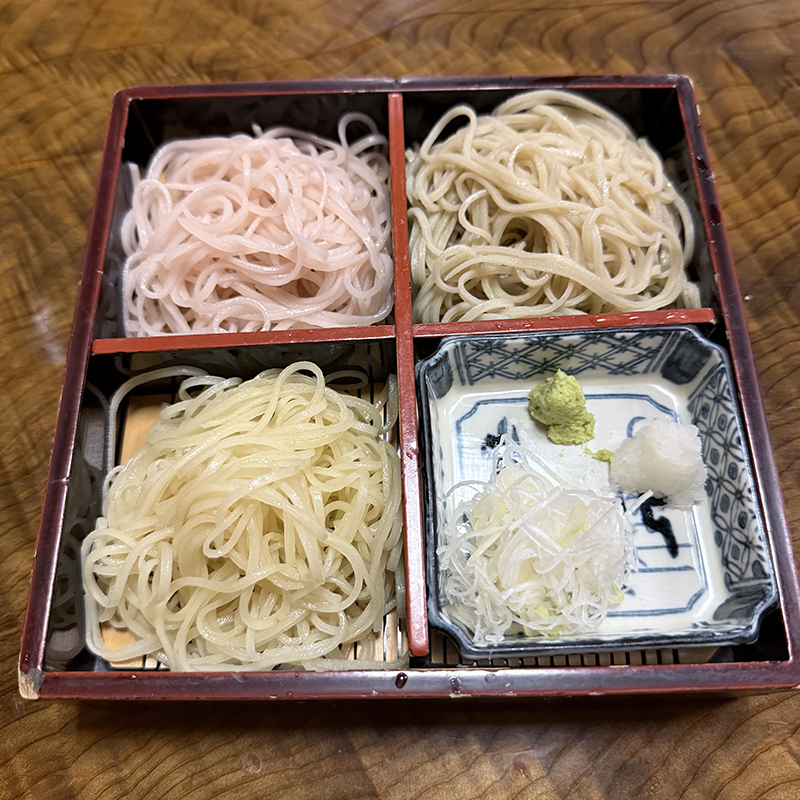 折角、一茶庵系のお店に来たので変わりそばを頂こうと思い本日お蕎麦の札を見ると変わりそばだけで3種類の用意がある。敢えて田舎そばは選択せずにせいろとさくらきり、ゆずきりの三色にした。