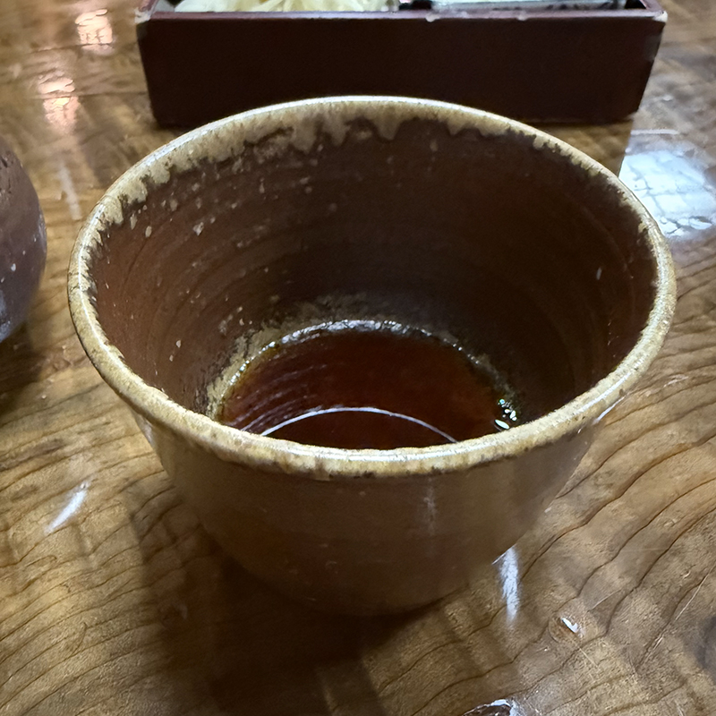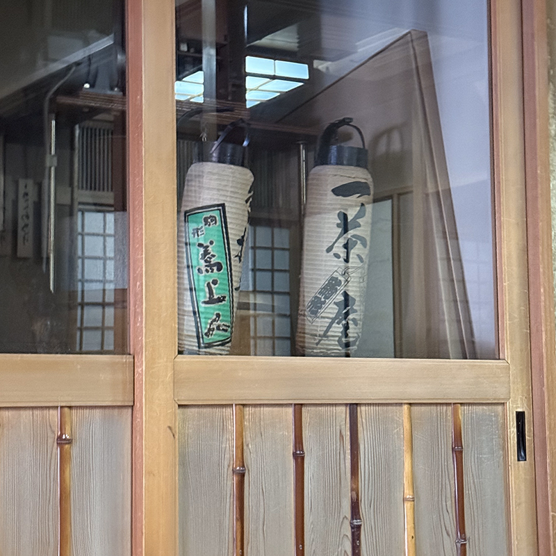 運よくギリギリ座敷の空席に滑り込めた。通路を挟んだ向い側の部屋には一茶庵の提灯が。