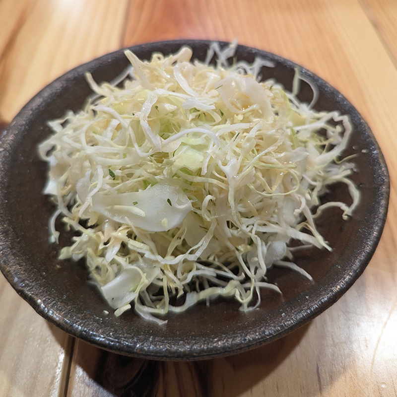 かつ丼の前にサラダとしてキャベツの千切りが供された。こちらは梅ドレッシングですっきり食べさせてくれる。かつ丼の合いの手としてはこれくらいでちょうどいい。