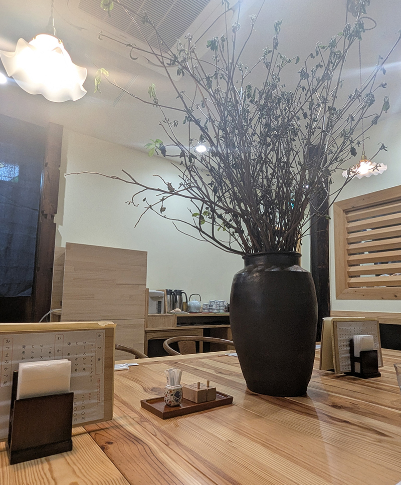 木目を基調としたシンプルな造りながらモダンで落ち着いた雰囲気。揚げ物を扱う店として清潔感に溢れていて気持ちがいい。