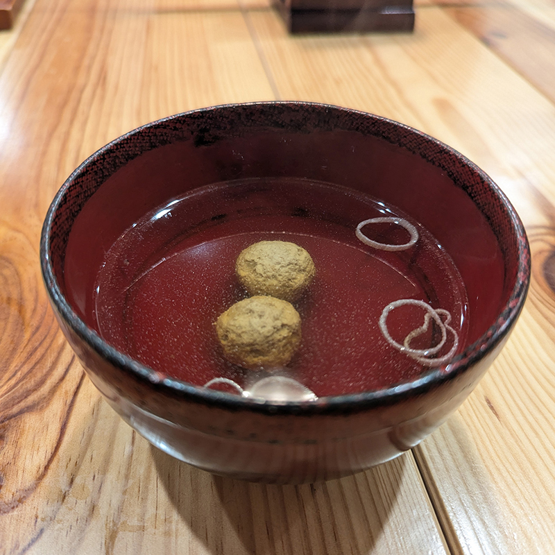 スープは出汁の旨味がしっかりと感じられる深い味。中に入っているつみれも旨味が凝縮されていて秀逸。