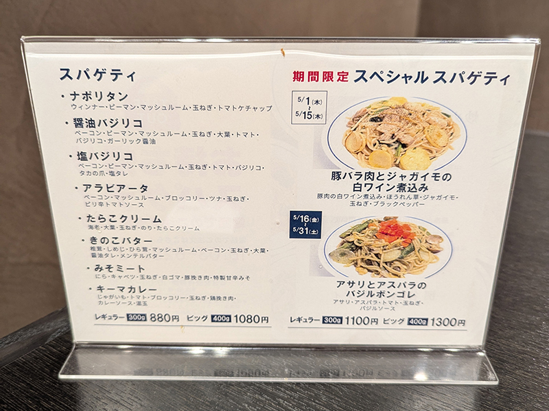 スパゲティはレギュラーでも300gあるだけあってかなりのボリューム。