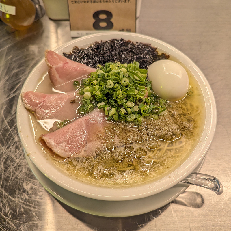 ラーメン自体は一種類しかないので前回と大きく変わるところはない。ただ今回はごはんをやめて半替玉を追加した。