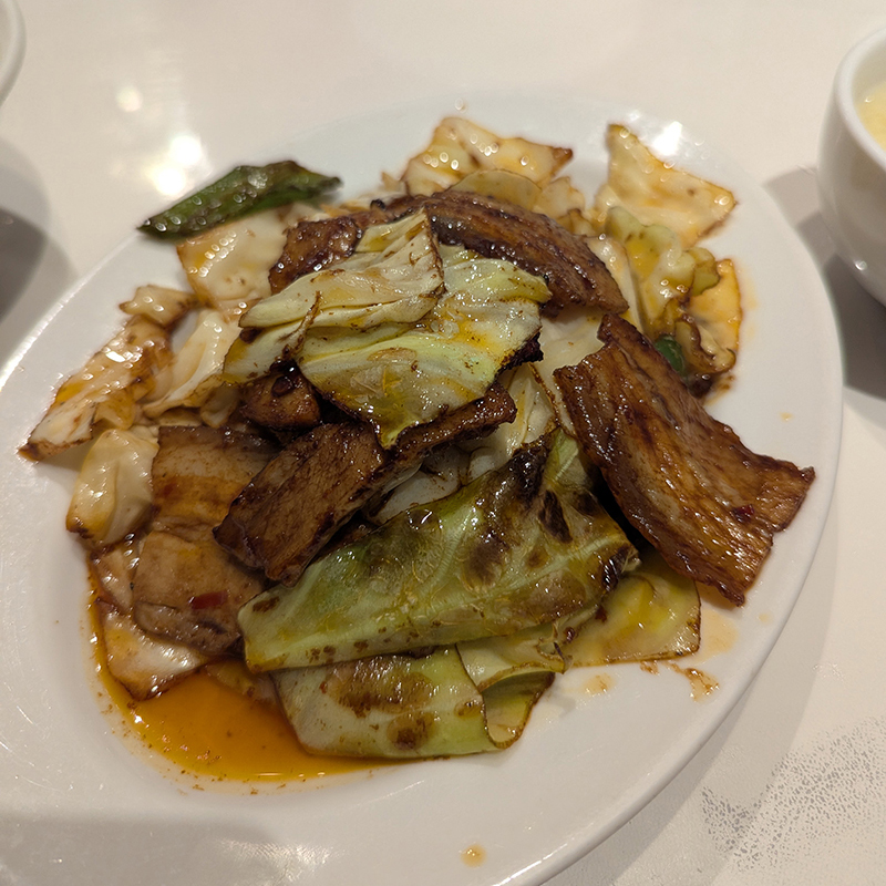 回鍋肉と言えば味噌味のイメージで少し本格的になると甜麺醤が香る。厚めにスライスされた豚肉も芳ばしく、しっかりと辛さも効いている。こうして頂くと四川料理だということも理解できる。