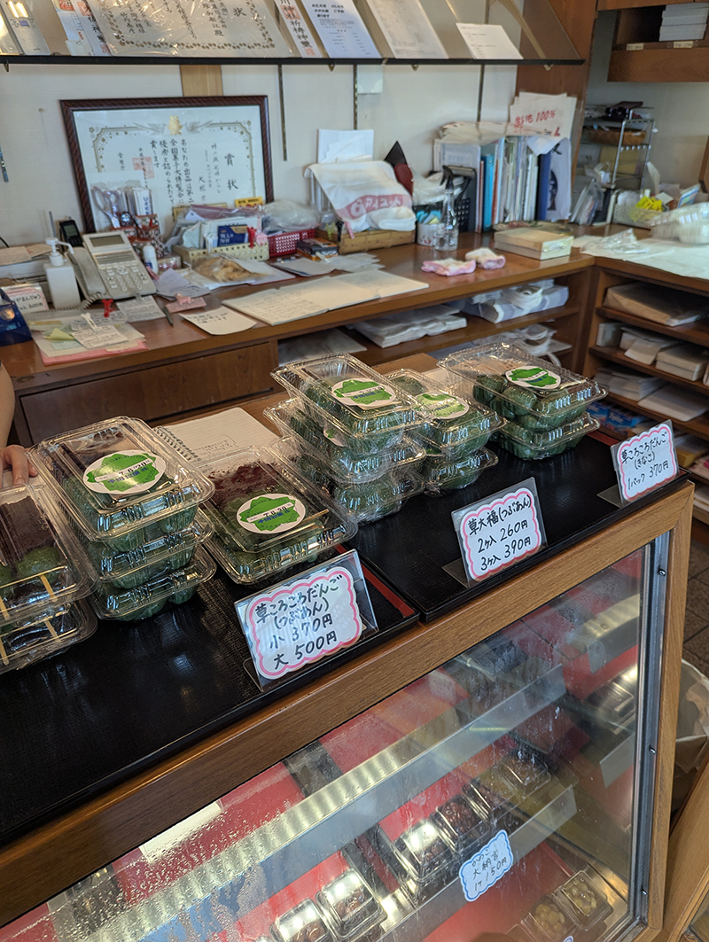 看板にもなっているだんごでは餡がたっぷりと乗った草ころころだんごがひと際、目に付いたのでこちらを購入した。