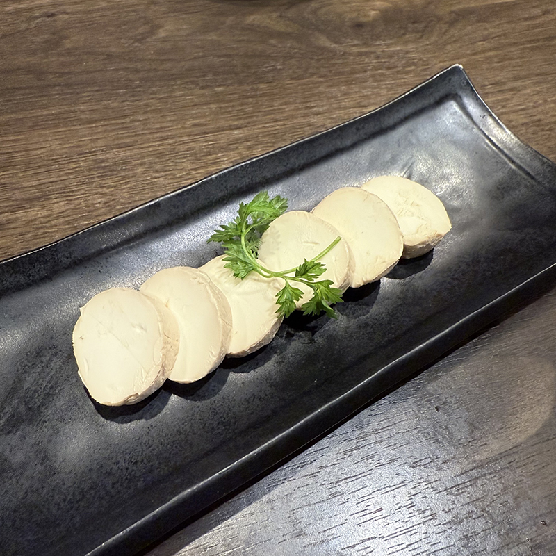 見た目はふつうのクリームチーズ。周りが少し老酒づけの片鱗を感じる程度。老酒づけというほど強い味が付いている訳ではないが、燻製とはまた違った独特の風味でいいお酒の合いの手になる。
