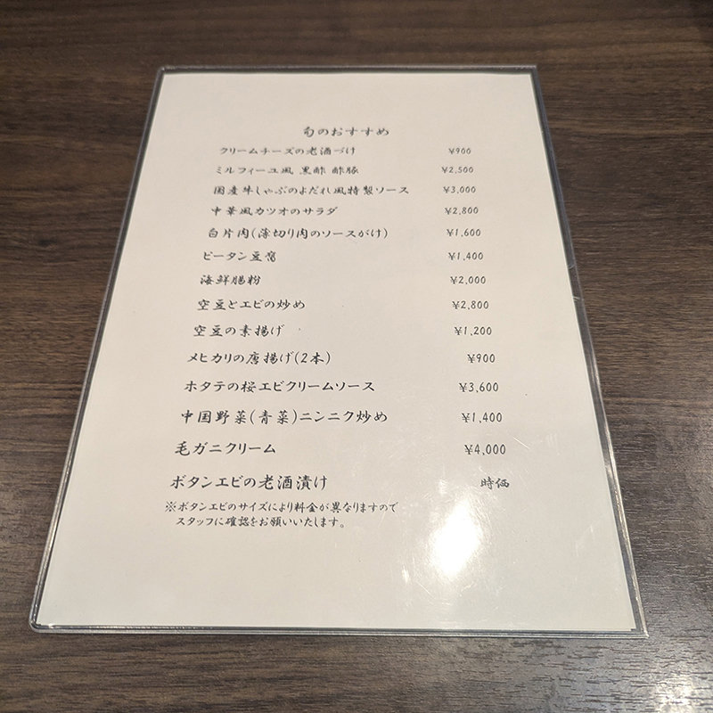 今回もこれまで頂いていない料理を中心に頂いたが、いずれもレベルが高く何を頂いても間違いがない。