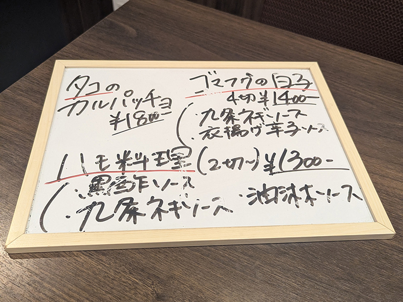 こちらは看板に書かれたその日のオススメメニューにあった料理。黒酢ソースも気になったが、九条ネギソースを選択。